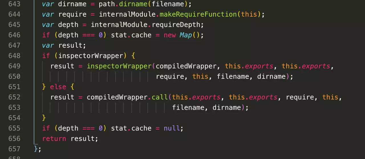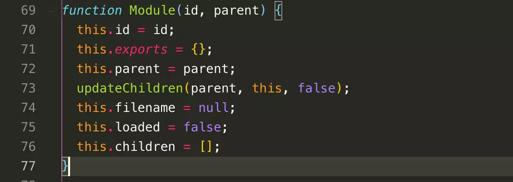 而且我们在模块当中this并不是指向global的,而是指向module.exports,至于为什么会这样呢?下面会讲到。