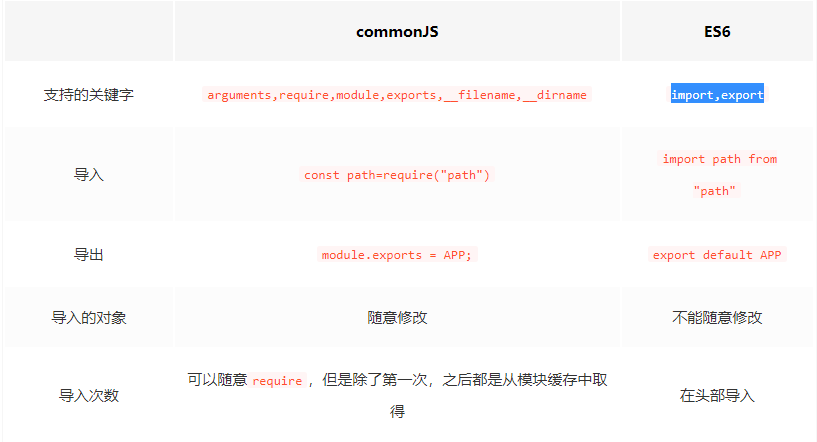 CommonJS模块导入用require,导出用module.exports。导出的对象需注意,如果是静态值,而且非常量,后期可能会有所改动的,请使用函数动态获取,否则无法获取修改值。导入的参数,是可以随意改动的,所以大家使用时要小心。