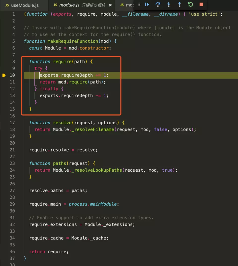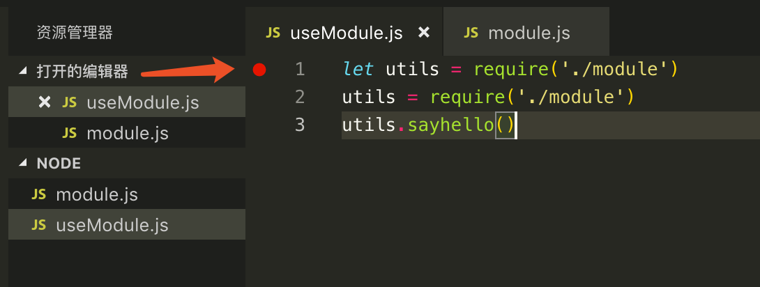 我们分别创建两个文件useModule.jsmodule.js,并且打上断点。