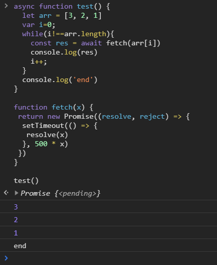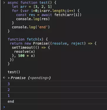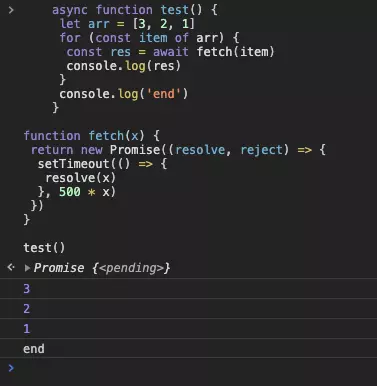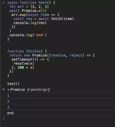 这样可以生效的原因是 async 函数肯定会返回一个 Promise 对象,调用 map 以后返回值就是一个存放了 Promise 的数组了,这样我们把数组传入 Promise.all 中就可以解决问题了。但是这种方式其实并不能达成我们要的效果,如果你希望内部的 fetch 是顺序完成的,可以选择第二种方式。