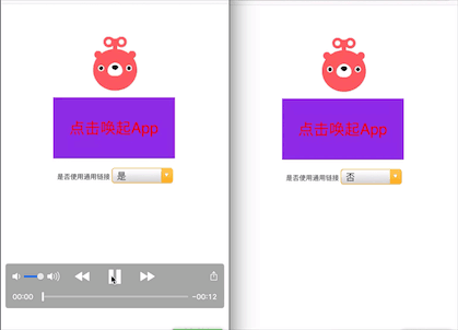 我们可以来体验一下,左边的是通用链接 universal link方式,右边是 URL Scheme 方式。