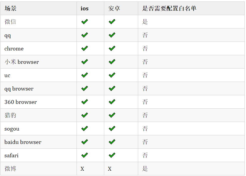 支持情况:占比最大的safari支持,uc及qq浏览器不支持,微信从7.0.5开始支持,其它…